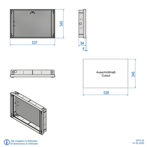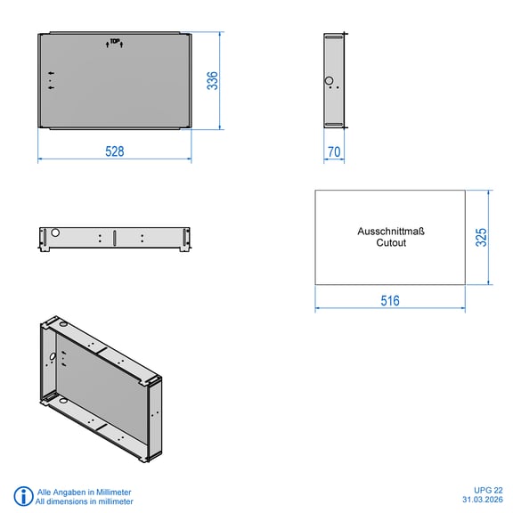 | Mounting | EPG - Built-in box for flush mounting (including HMK) UPG - Built-in box (optionally with HMK) MONT(R2) - Mounting support set with straight plates for plastering HMK - Cavity wall mounting kit consisting of bracket and installation template |