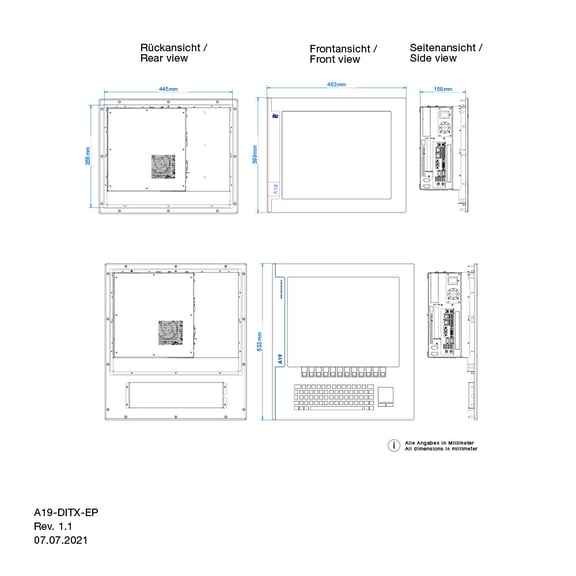 The A19-LX can be used as powerful and fanless embedded Panel PC in production areas. Additional to this, the system is available with keyboard and touchpad.