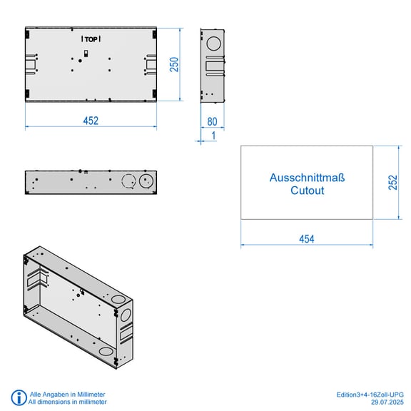 The touch panel is also equipped with a microphone and active speakers, making it easy to connect to a door intercom or intercom system. We also offer adapter frames for flush-mounted sockets from various manufacturers for our flush-mounted touch PC, which can be flexibly integrated into any wall or cavity wall.