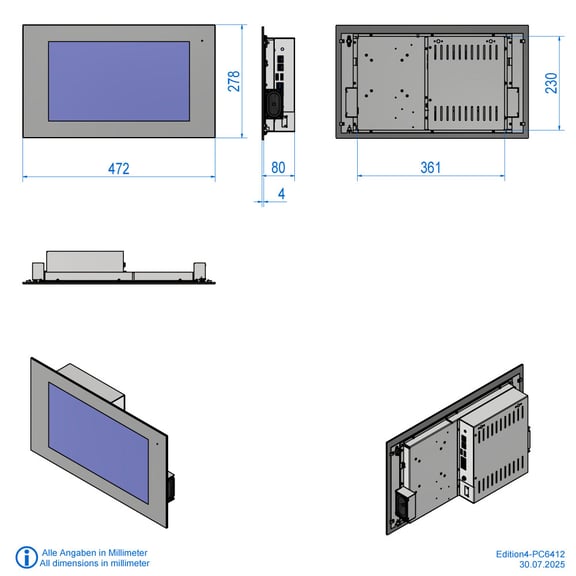 as 10,1 and 12,1 Zoll also for onwall mounting (AP) - TFT-LCD Display, in sizes 10,1″, 12,1″ and 15,6″