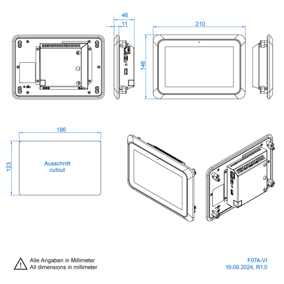 Das Touchpanel F07A ist ein robustes Einbaugerät zur Montage in einem Steuerpult oder in einer Schalttafel. Das leuchtstarke 7 Zoll Widescreen Multitouch-Display erlaubt eine präzise Darstellung und Bedienung von industriellen Anwendungen im Kioskmode. Optical Bonding sorgt für ein scharfes und brillantes Bild, geringe Reflektionen und hervorragendem Ablesewinkel. Das Display mit kapazitivem Glastouch ist fugenlos in die gefräste Aluminiumfront eingebaut und bietet Schutzart IP65. Abgeschrägte Kanten sorgen für eine Reduzierung der Verschmutzung.